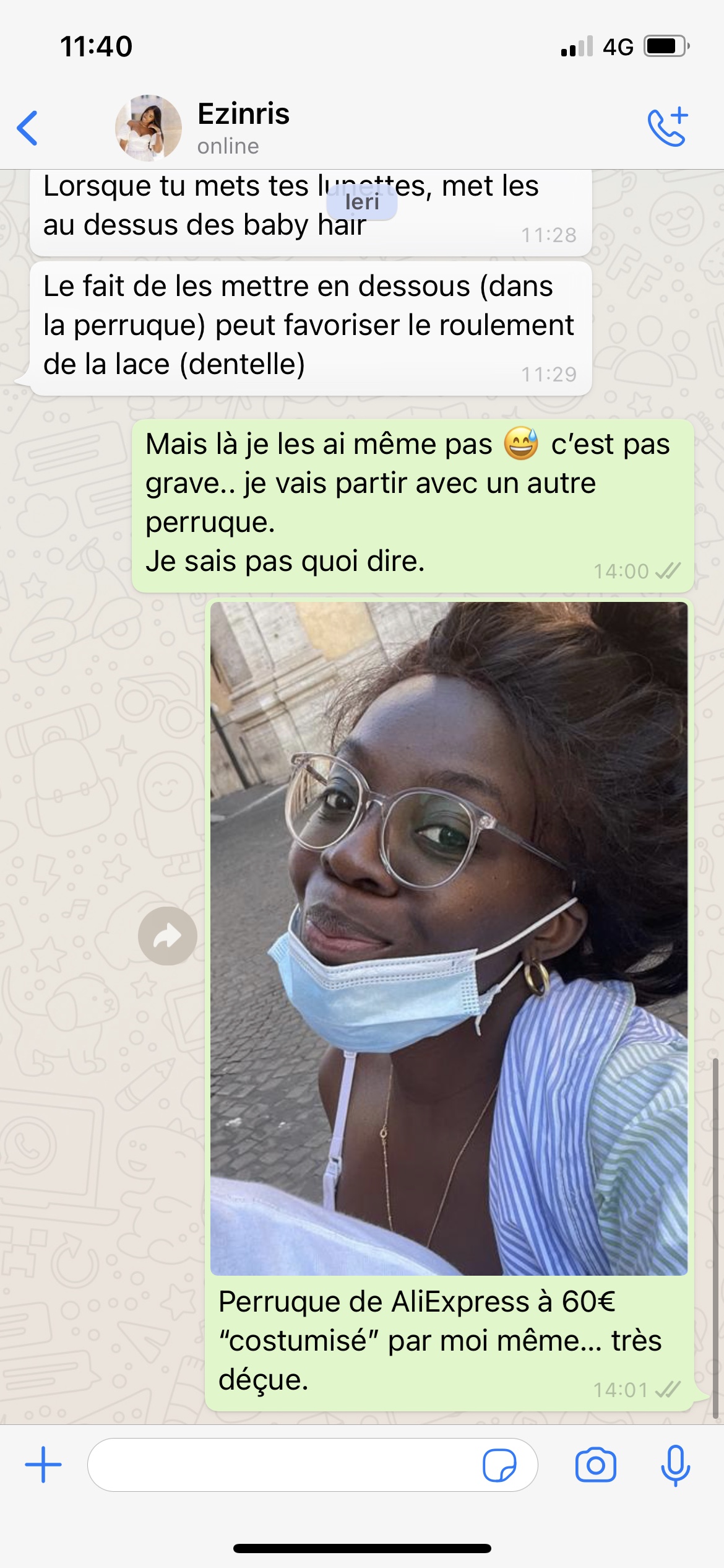 4 ans que j’ai commencé mon expérience chez Ezinris. Qualité au top. Service client au top. La plupart de mes perruques ont au moins 2 ans et la pose sans colle me permet de prendre soin de mes cheveux naturels. Merci Rose car mes perruques sont devenus des accessoires. ️